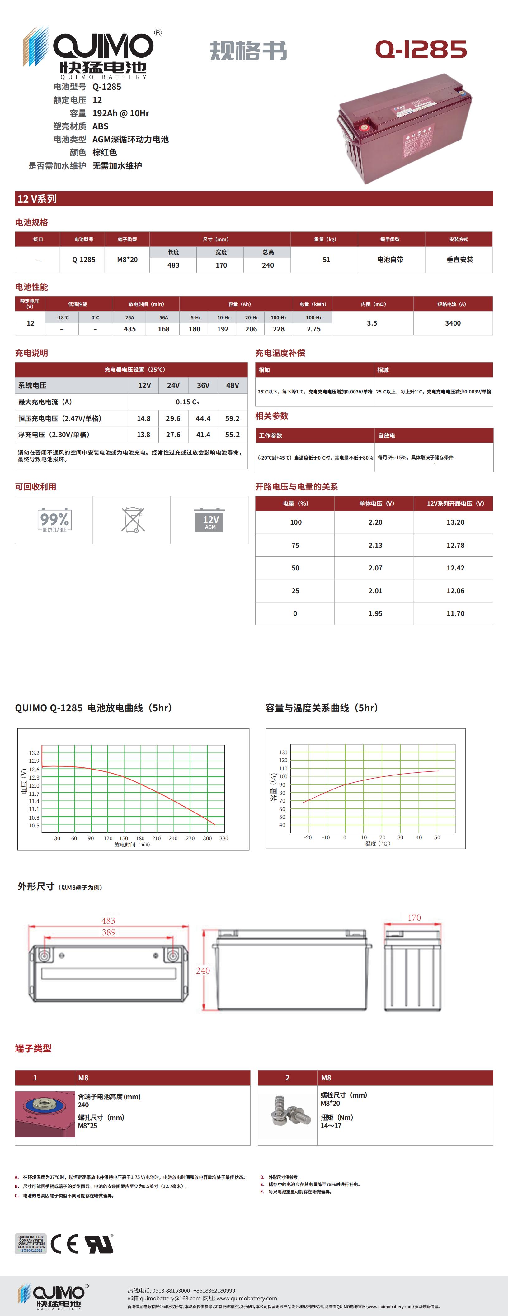 QUIMO登高車用閥控式鉛酸蓄電池Q-1285