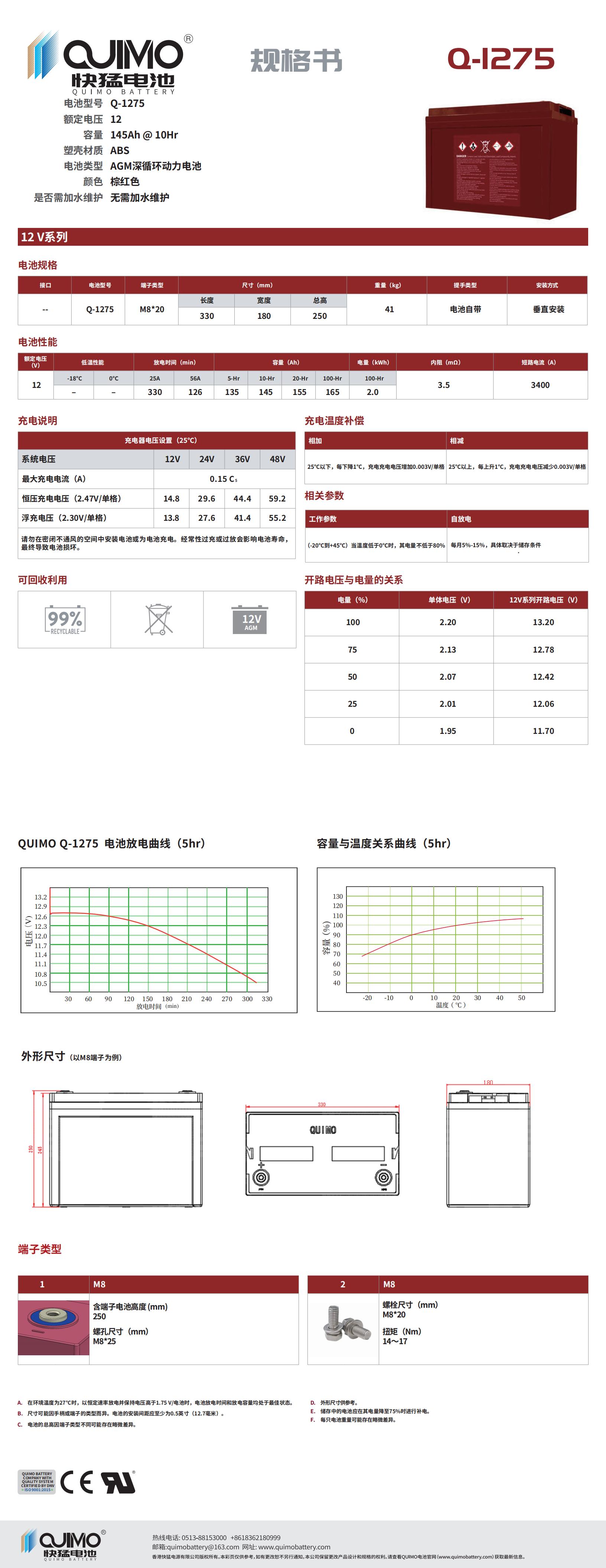 QUIMO登高車(chē)用閥控式鉛酸蓄電池Q-1275
